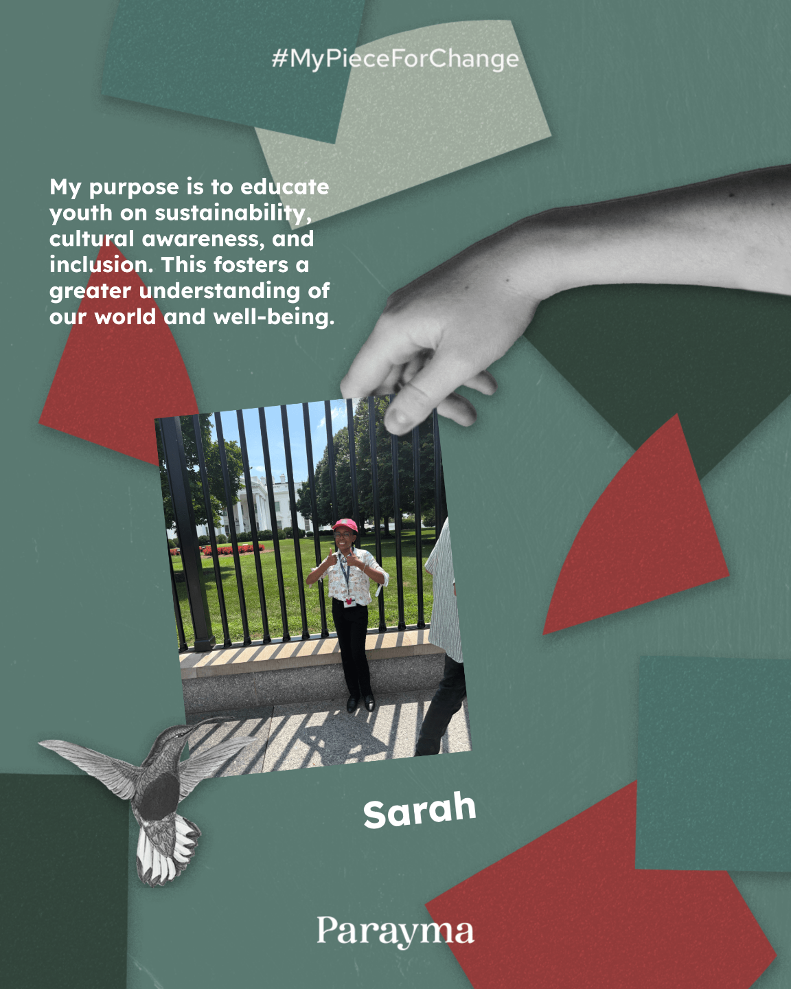 "My purpose is to educate youth on sustainability, cultural awareness, and inclusion. This fosters a greater understanding of our world and well-being."