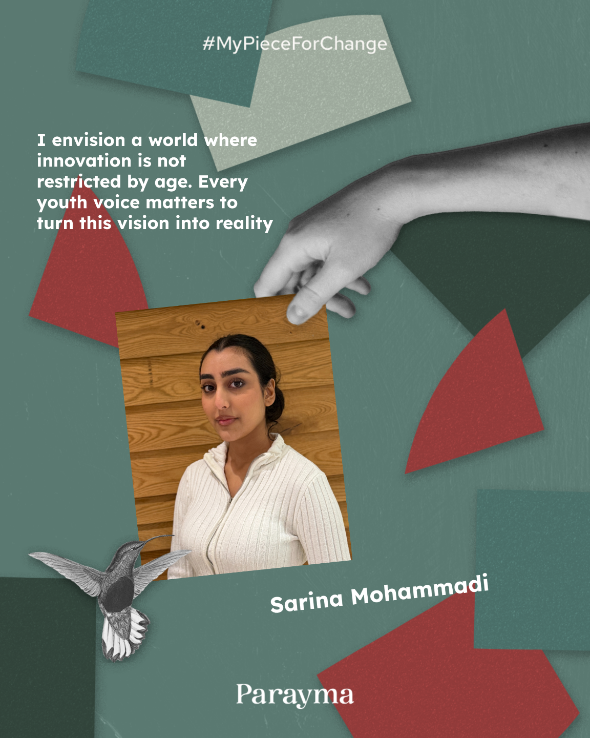 "My piece for change is empowering youth through education, skills, and mentorship so they can shape a brighter, equitable future."