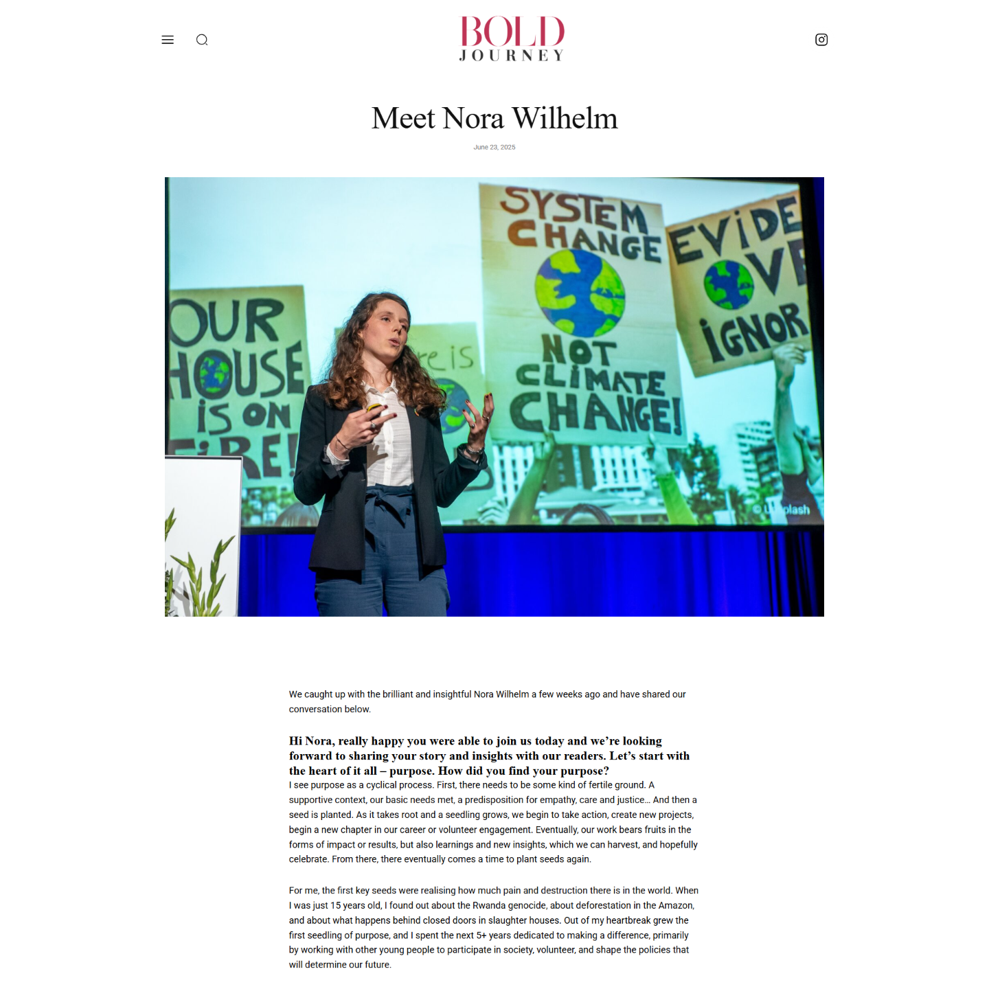 - What they wish everyone knew about their cause (e.g. climate, food system, LGBTQIA+ rights, indigenous-led regeneration, inclusion, mental health…)